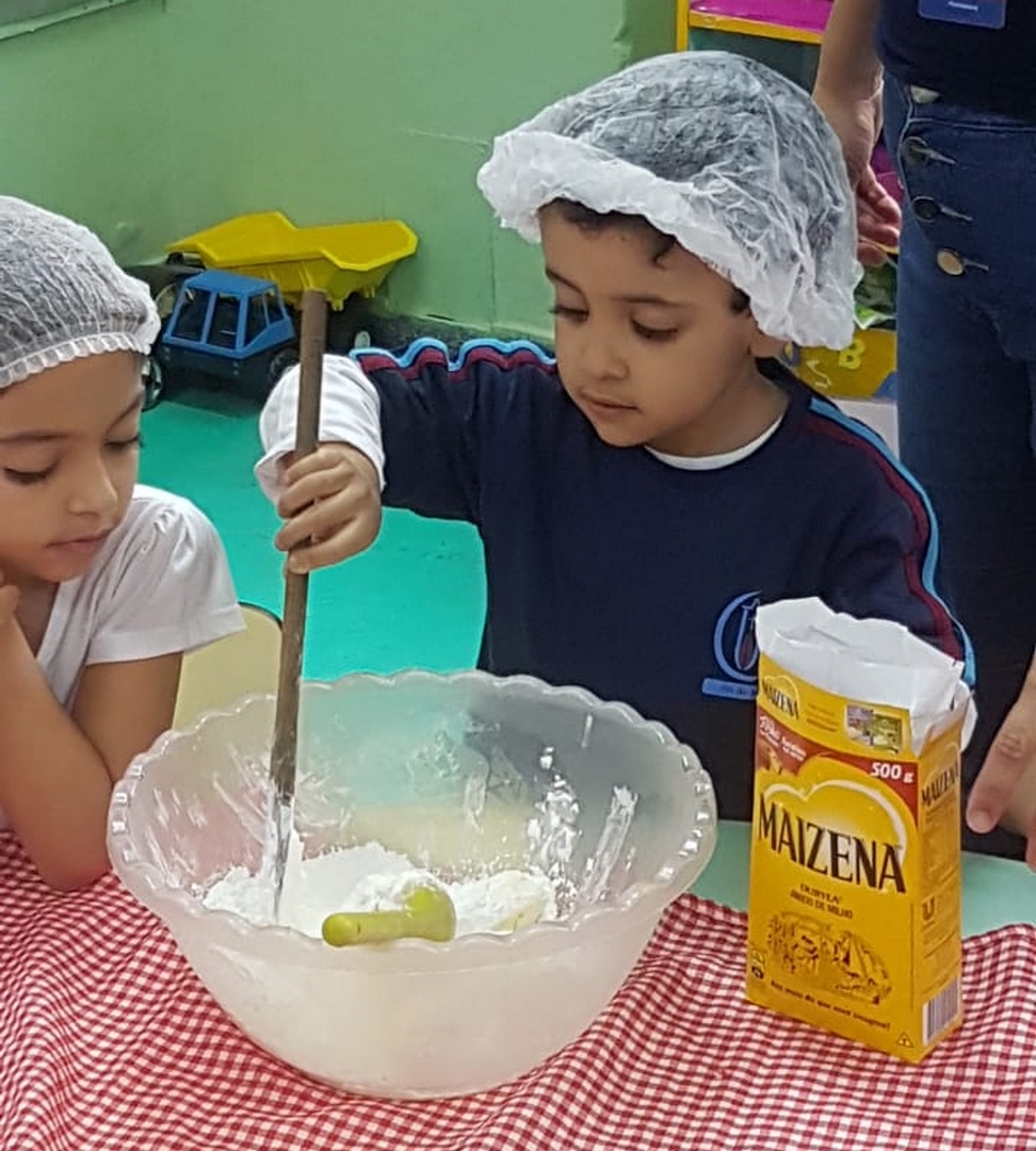 As aulas de culinária ajudam no desenvolvimento de novas habilidades e na aprendizagem de muitos conteúdos. Além de ser um momento de diversão, os alunos trabalham a concentração e a organização, participando de todas as etapas do processo e adoram!